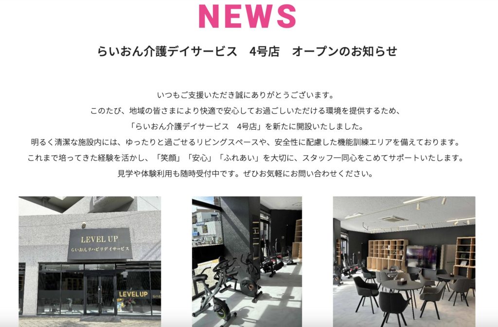 ライオン介護デイサービス様ホームページはこちら