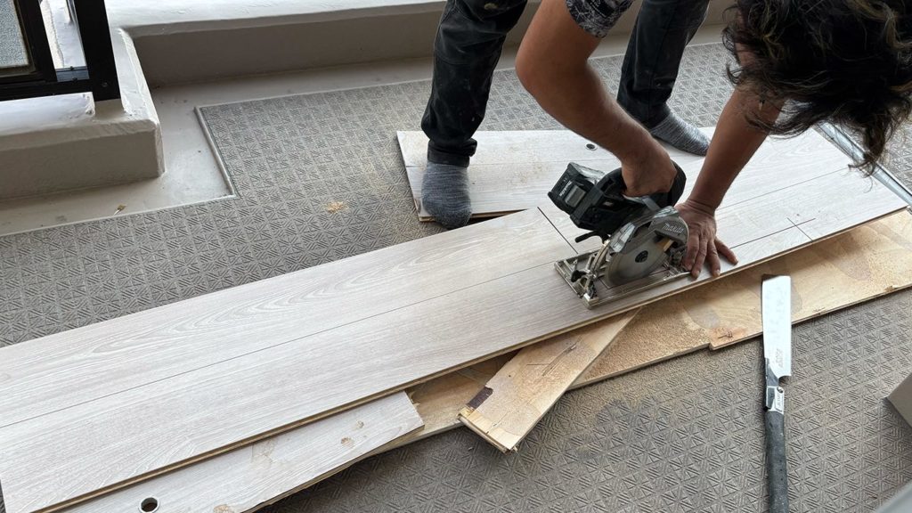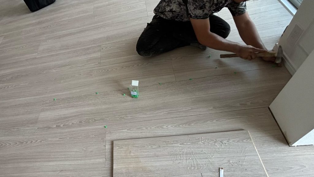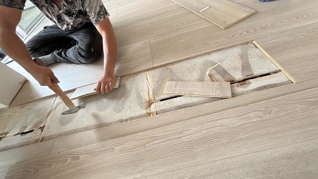 実は一部フローリングを張り替える工事はフロアタッカーを使えないので、ボンドとハンマーなどを駆使して施工をするというリフォーム専門の大工だからこそできる難しい工事になります。