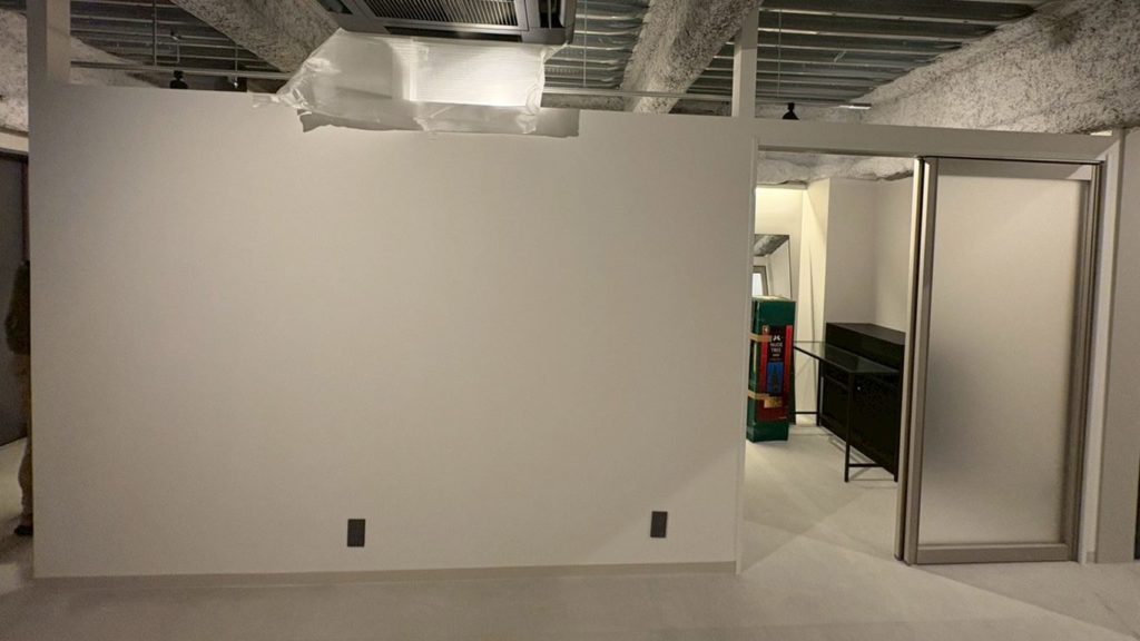 今回の店舗リフォームには様々なこだわりがありましたが、中でもPanasonicスクリーンウォールは半透明型の今流行りの建具の一つなので、非常に施工が楽しみでした!